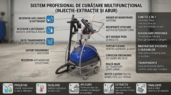 ✔ Aspiratoare cu aburi✔ Injecție-extracție + abur✔ Aspirator cu spălare